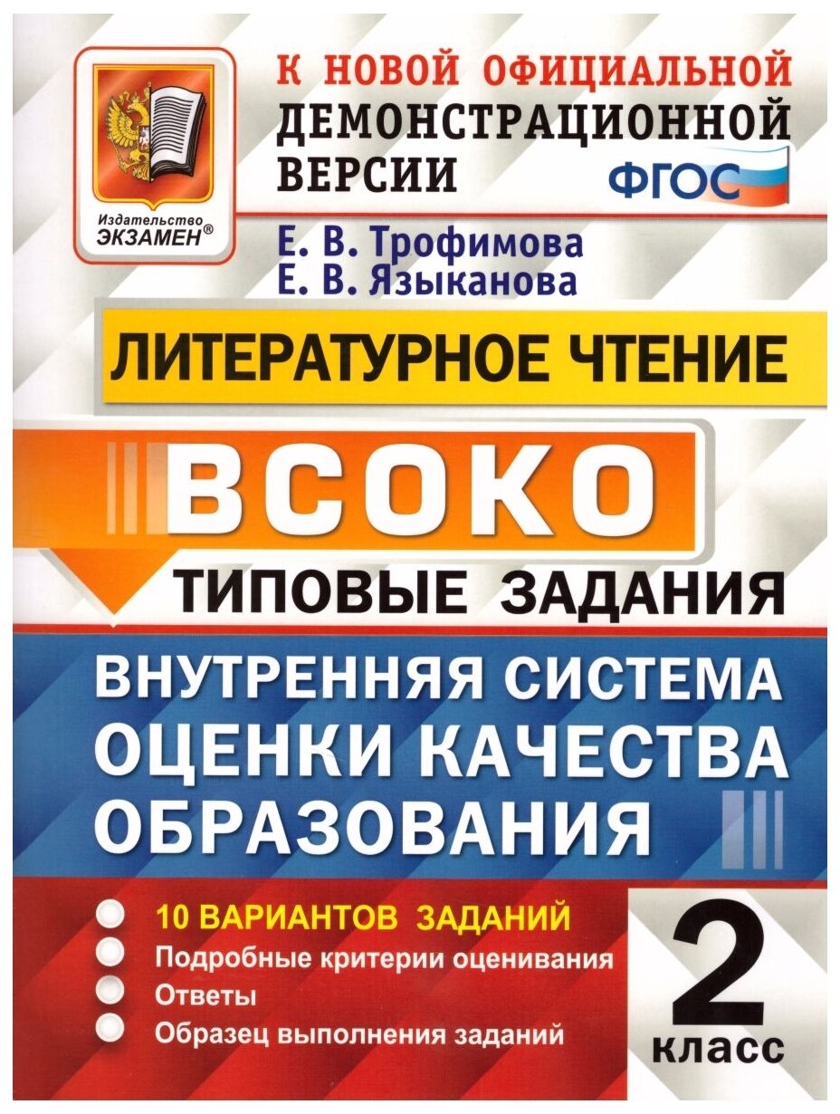Литературное чтение 2 класс Типовые задания Внутренняя система оценки качества образования 10 вариантов заданий Подробные критерии оценивания Ответы Образец выполнения (Елена Викторовна Трофимова, Елена Вячеславовна Языканова); Экзамен, 2021