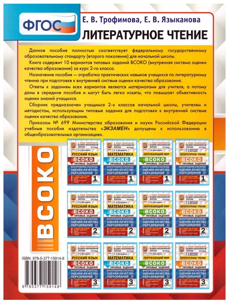 .Книга содержит 10 вариантов типовых заданий ВСОКО (внутренняя система оценки качества образования) за курс 2-го класса.
