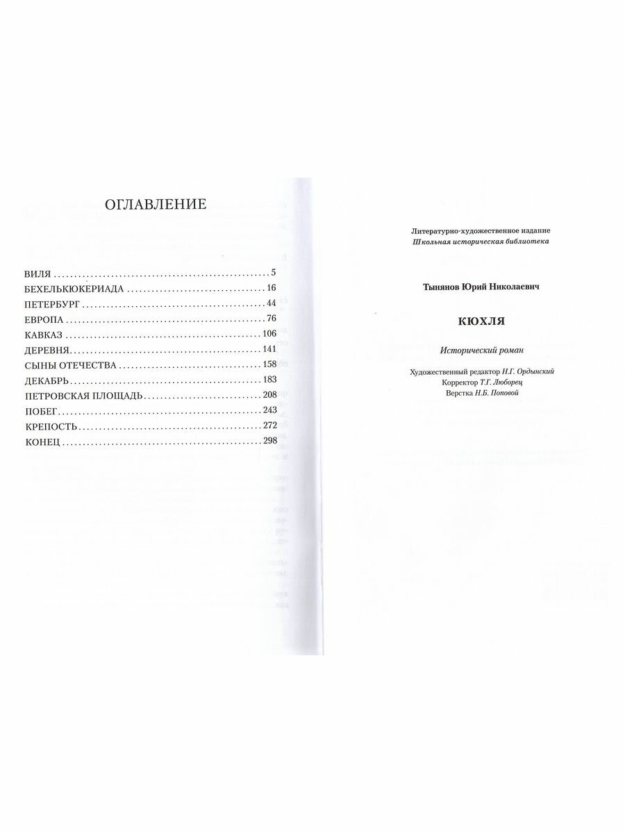 Исторический роман «Кюхля» (1925) воссоздает образ русского поэта и декабриста Вильгельма Карловича Кюхельбекера (1787-1846). Рассказ о Кюхельбекере – его учебе в Лицее, журналистской работе, сочинительстве, сердечных увлечениях, дружбе с Пушкиными, Грибоедовым, участие в декабристском восстании, заключении в крепость и ссылке – разворачивается на фоне общественной и политической жизни эпохи, столь богатой событиями.