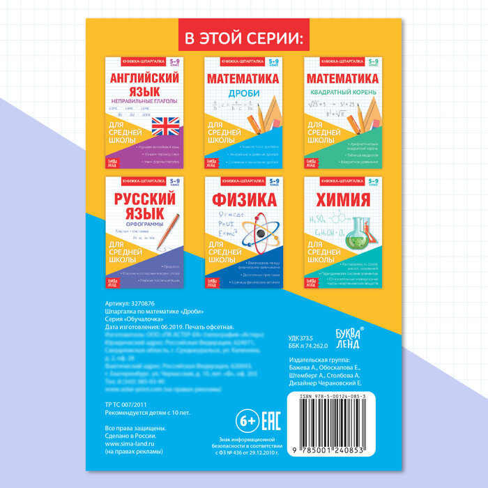 Книжка-шпаргалка Математика 5-9 класс Дроби Для средней школы; Буква-ленд, 2020