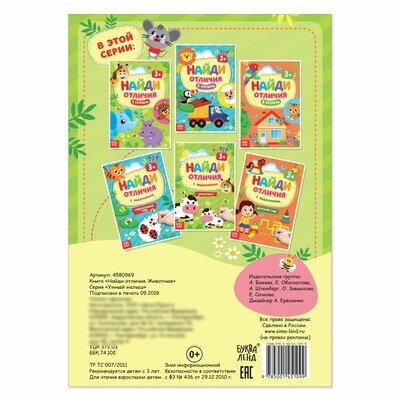 Сервис сравнения цен СкидкаГИД предлагает сравнить цены на товар «Книга: Найди отличия с заданиями Животные 3 (Сачкова Евгения Камилевна); Буква-ленд, 2019»