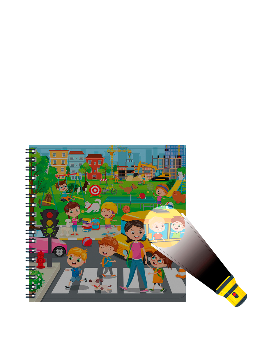 книга с фонариком из серии весёлые пряталки, виммельбух, найди и покажи