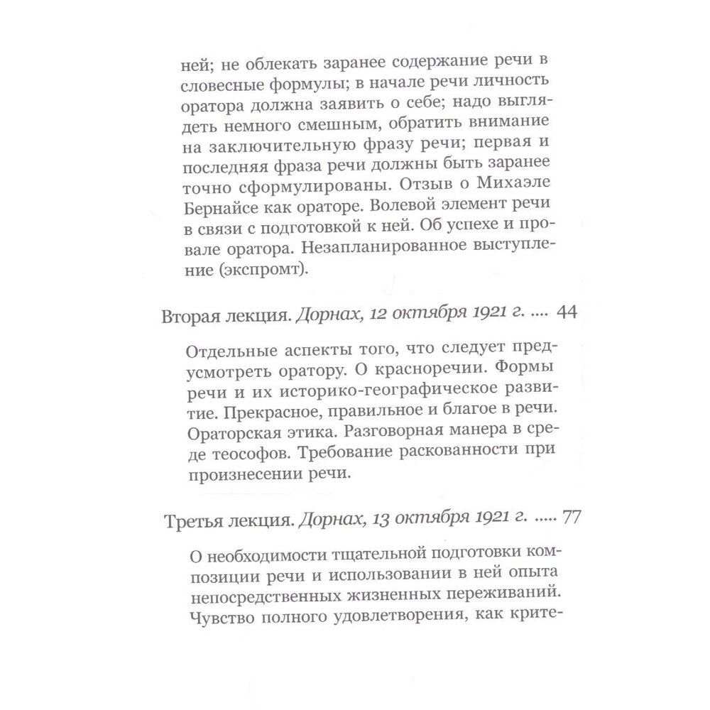 В настоящем издании приведены лекции Рудольфа Штайнера, посвященные правильной подготовке и проведению публичных выступлений. Рекомендации по развитию ораторских навыков и повышению искусства речи, сделанные человеком, прочитавшим около 6000 лекций, фактически составляют мастер-класс ораторского искусства. Автор рассматривает как процесс подготовки к публичному выступлению, так и нюансы такого выступления. Он раскрывает условия приданию речи живости и убедительности, предостерегает от возможных ошибок и затрагивает некоторые вопросы оккультного воздействия оратора на слушателей. Отдельно рассматриваются незапланированные выступления и диспуты.