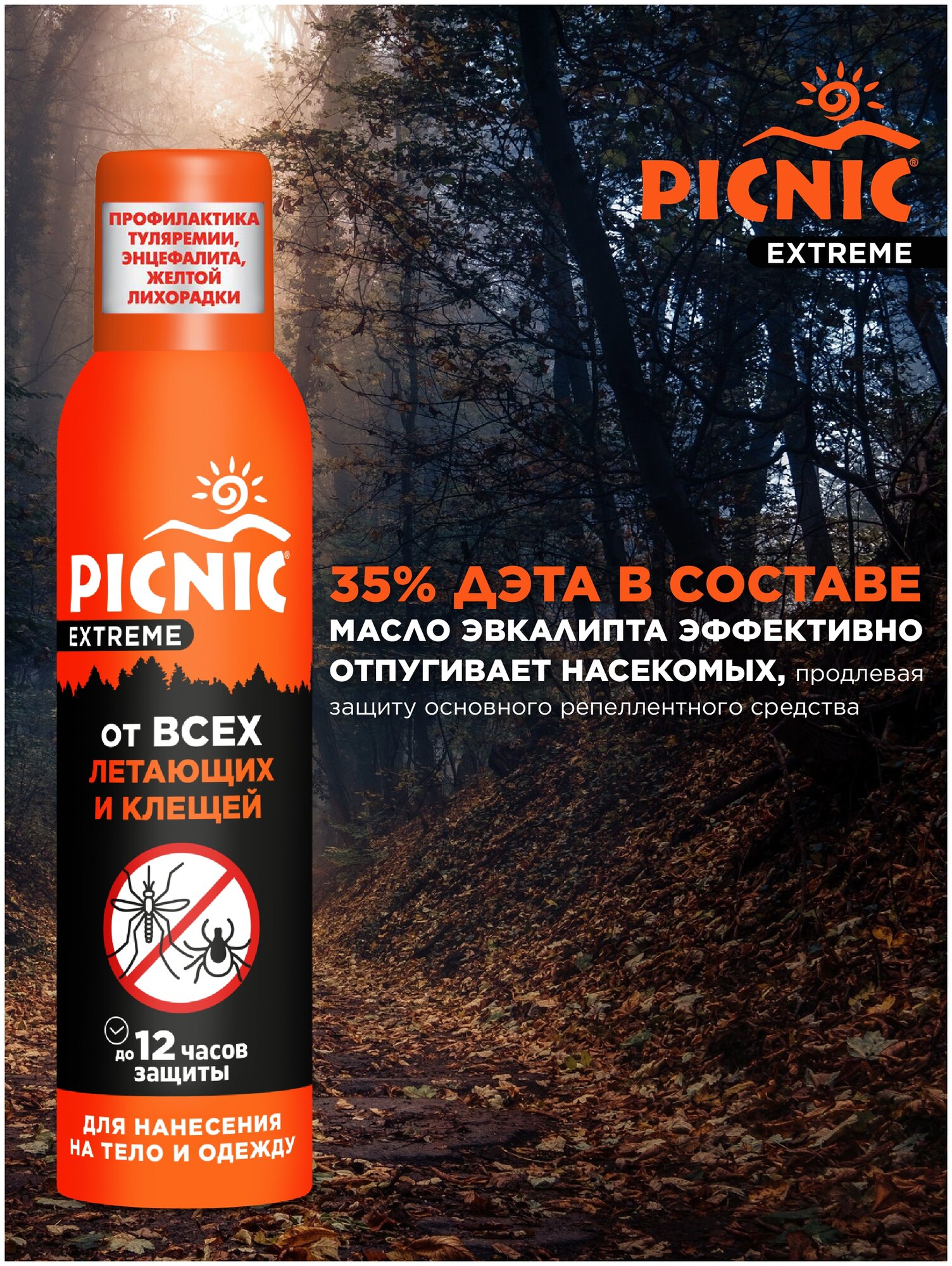 Аэрозоль от клещей и комаров усиленный Picnic/Пикник Экстрем 150мл ООО Аэрозоль Новомосковск (573357)