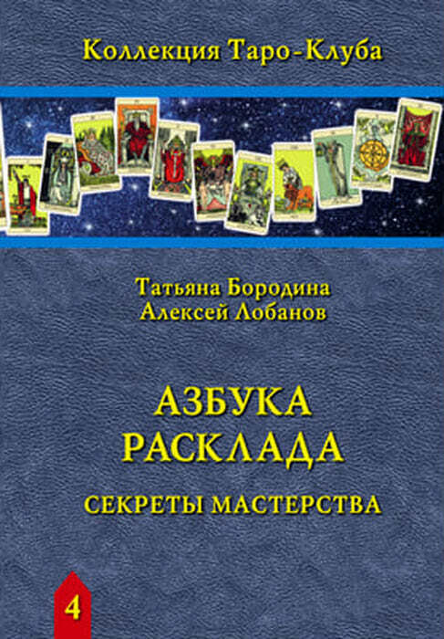 Книга "Азбука Расклада. Секреты мастерства" - очередная в серии "Коллекция Таро-клуба". В ней описываются методики построения раскладов, на которые может опираться таролог предсказатель, создавая или трактуя расклад. Читатель найдет примеры формирования раскладов с позиции сакральной геометрии, по сюжетам картин, глифам Арканов, Литературным произведениям . Книга Т.Бородиной А.Лобанова может быть очень полезной для для тех тарологов, кто хочет выйти за пределы консервативного отношения к раскладам, но при этом остаться в рамках грамотного и осмысленного понимания основ творческого подхода к конструированию и чтению раскладов в картах Таро.