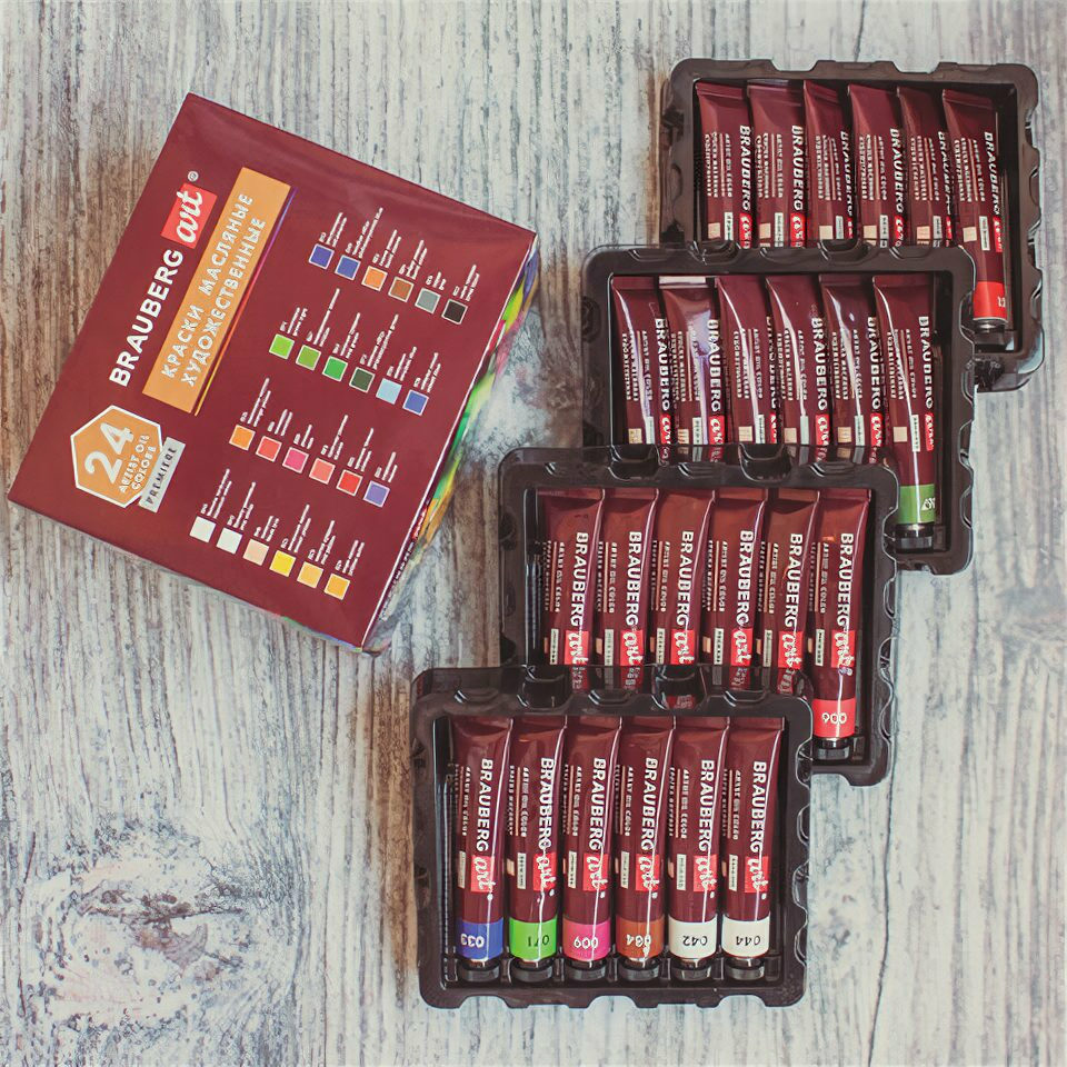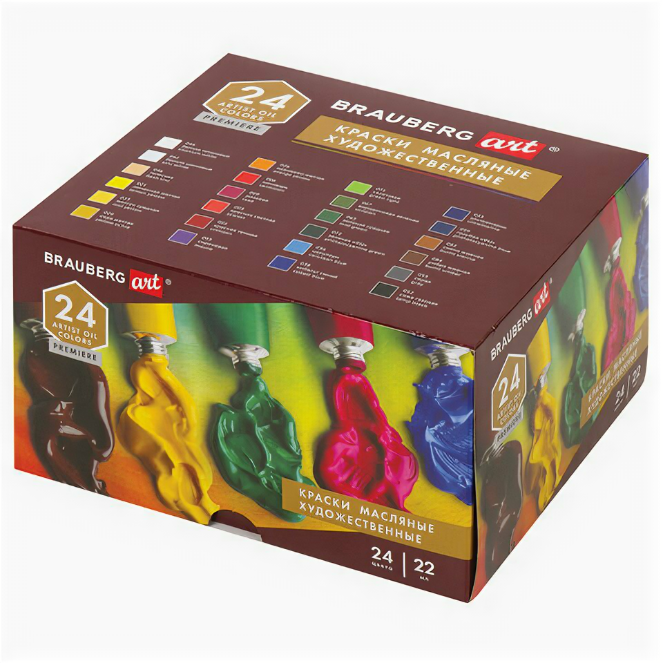 Краски масляные художественные Brauberg ART PREMIERE 12 цветов по 22 мл в тубах (191458) Краски масляные художественные Art Premiere 12 цветов