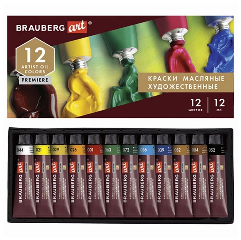 Краски масляные художественные Brauberg ART PREMIERE 18 цветов по 12 мл в тубах (191456) Краски масляные художественные Art Premiere 18 цветов 191456