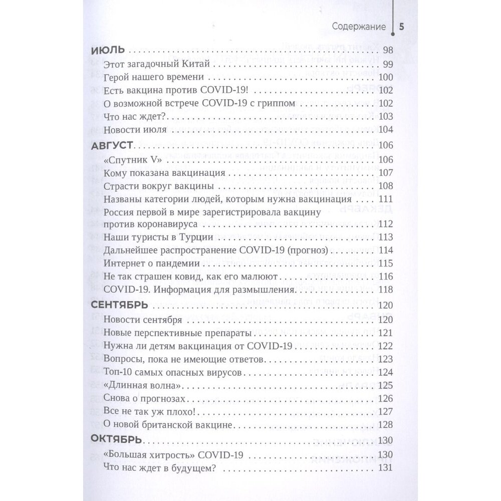 Автор стремится ответить на возникающие у людей многочисленные вопросы о том, что представляют собой коронавирусы, какова степень опасности встречи с ними, как можно избежать заражения, что делать, если встреча с вирусом все же произошла, по какому сценарию развивается пандемия в России, что собой представляют вакцины против CОVID-19.