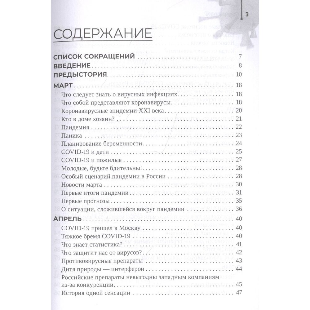 В книге академика РАН Ф.И. Ершова рассказана история последней, еще не закончившейся коронавирусной пандемии, потрясшей человечество в 2020 г. Материалы книги представляют собой последовательное изложение захлестнувшего мир страшного заболевания от первого случая до наших дней, с критическим анализом фактов, гипотез и прогнозов.