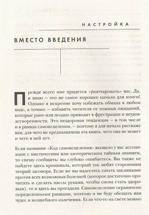Книга не впечатлила. Если говорить вкратце, то книга о психосоматике. 95% – это рассуждения о важности психосоматики, остальные 5% – конкретные психологические техники влияния на оздоровление. Если совсем нечем заняться, то может почитать в дороге или в очереди. Сплошная вода и давно известная всем информация. Пустая трата времени