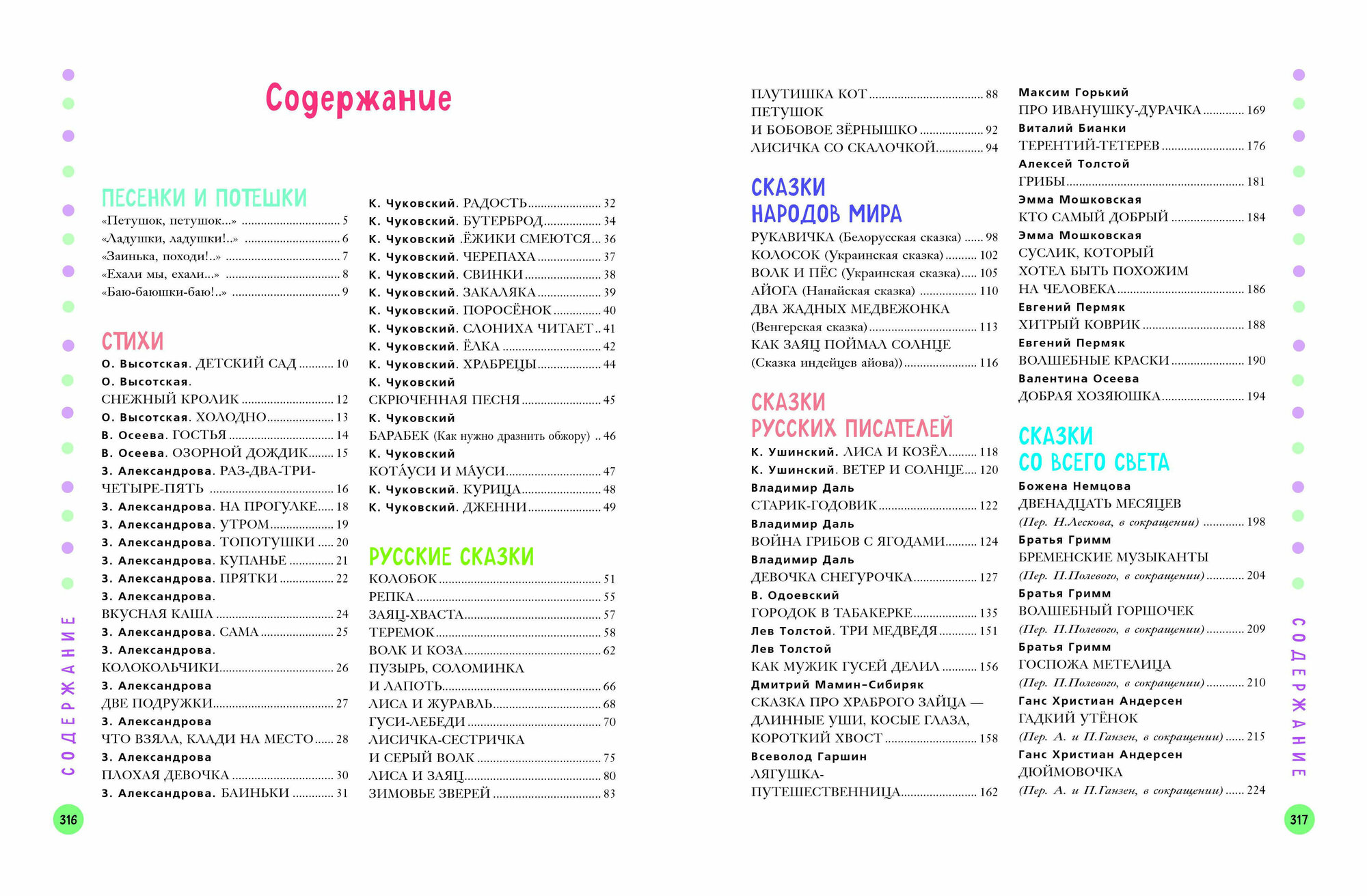Разнообразные стихи, потешки, сказки, рассказы. Такое многообразие очень выручает с детьми (дочь показывает номер страницы - и мы читаем).