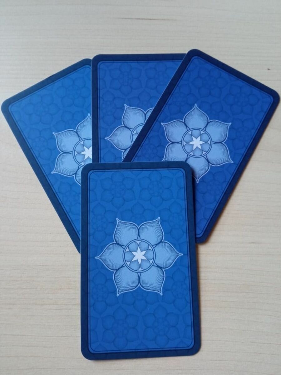 Формат 5,3 на 8,8 см, карты матовые, корбка мягкая, чуть свободна для колоды по толщине. Серые цвета арканов заменены на оттенки кофейного, рамка тоже светлого кофейного оттенка, как и две пустые карты. Цвета в целом в раскладах выглядят темнее, а рисовка проще. Вырубка карт хорошая, сама колода толстенькая, толще моей старой разбухшей AGM. Карты смотрятся красиво и эстетично, буду надеяться на долгое ипользование.