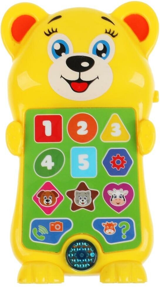 Вашему ребёнку непременно понравится этот яркий телефон в виде милого медвежонка, он с удовольствием будет нажимать на кнопочки и слушать весёлые песенки, звуки, загадки и стихи. В лёгкой игровой форме малыш быстрее выучить цифры, формы и названия животных. Компактную игрушку удобно брать с собой.