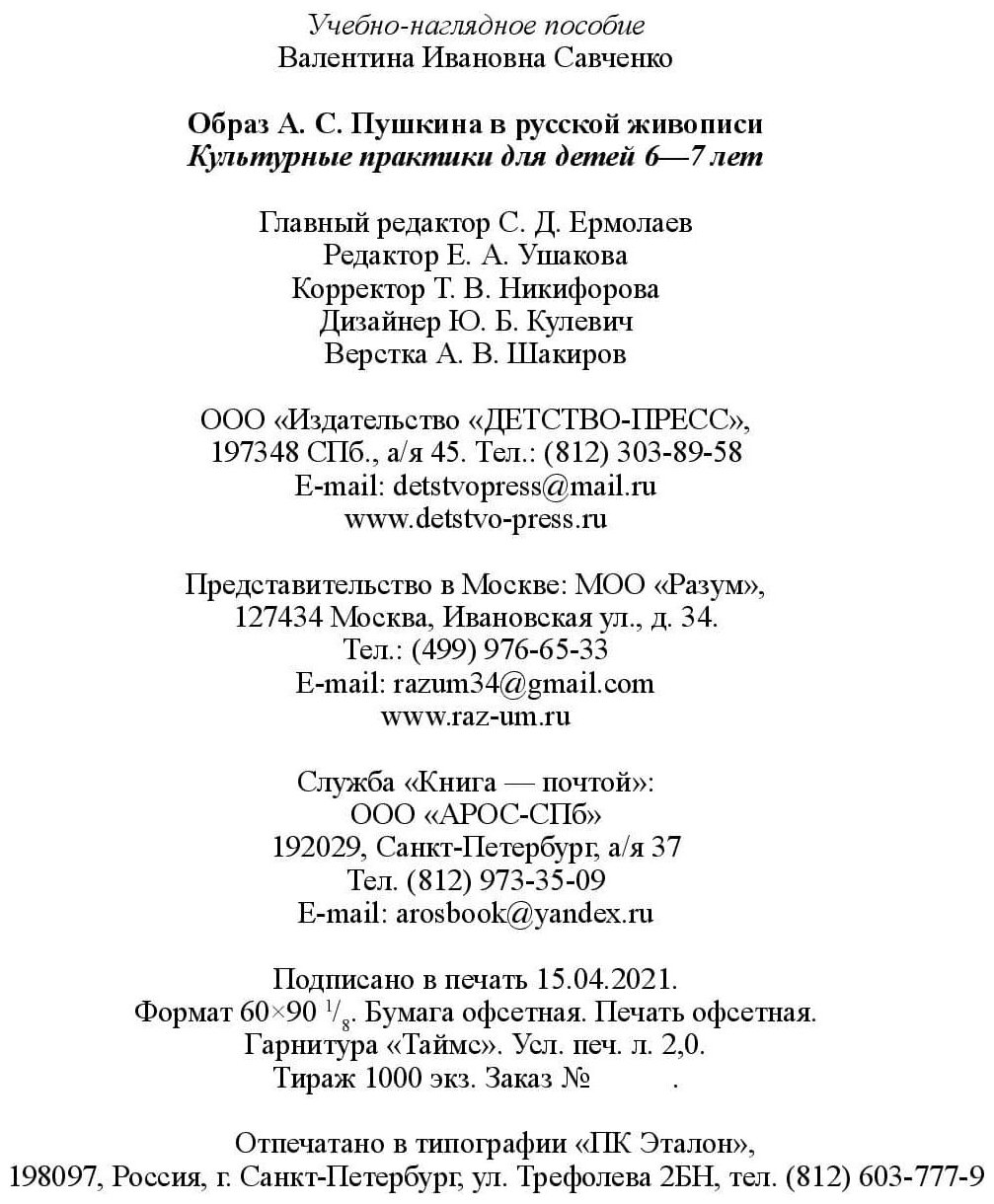 Образ А. С. Пушкина в русской живописи. Культурные практики для детей 6—7 лет. Учебно-наглядное пос. (Савченко В.); Детство-Пресс, 2021