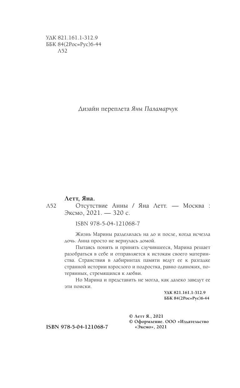 Книга: Отсутствие Анны (Яна Летт); Эксмо, Inspiria, Редакция 1, 2021