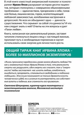 Издание с такой же обложкой, какой продают в офлайн магазинах. Но на деле издание чуть более вытянутое и потоньше. Бумага тонкая, поэтому неудивительно, что книга пришла слегка испачканной. Но Ялом за такую цену это более чем выгодно, поэтому для простого ознакомления подойдёт. Сам же "Палач любви" очень хорош. Одна из лучших книг Ирвина, по моему мнению. Очень советую к ознакомлению.