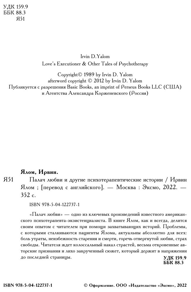 Палач любви и другие психотерапевтические истории (Ялом Ирвин Дэвид); ООО "Издательство "Эксмо", 2021