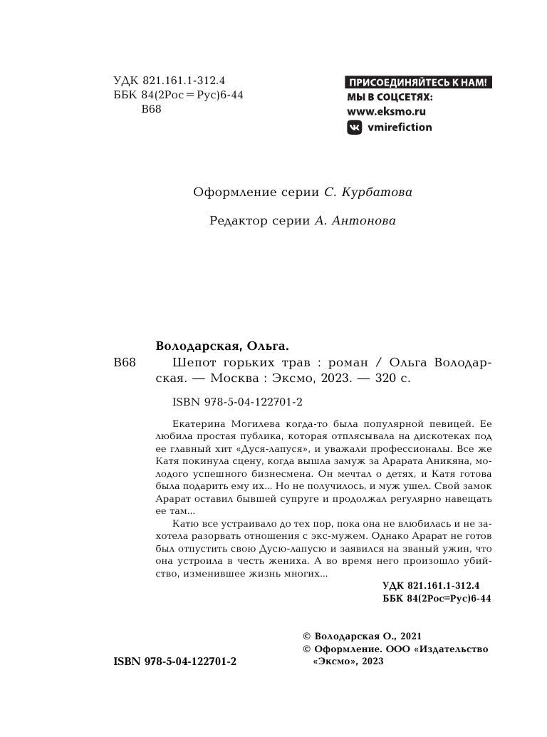 Книга: Шепот горьких трав (Володарская Ольга Геннадьевна); ООО "Издательство "Эксмо", 2021