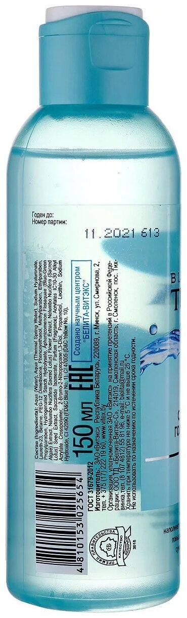 | Состав | вода, термальная вода, гиалуронат натрия, лаурет-23, бетаин, пэг-12 диметикон, феноксиэтанол, метилпарабен, этилпарабен, пропилпарабен, гидрогенизированный гидролизат крахмала, экстракт aphanizomenon flos-aquae (сине-зеленых водорослей), экстракт цветов nelumbo nucifera (лотоса), экстракт семян nelumbo nucifera (лотоса), экстракт планктона, парфюмерная композиция, кроссполимер акрилатов и c10-30 алкилакрилата, 2-бром-2-нитропропан-1,3-диол, пропандиол, лецитин, гидроксид натрия, ci 42090 |