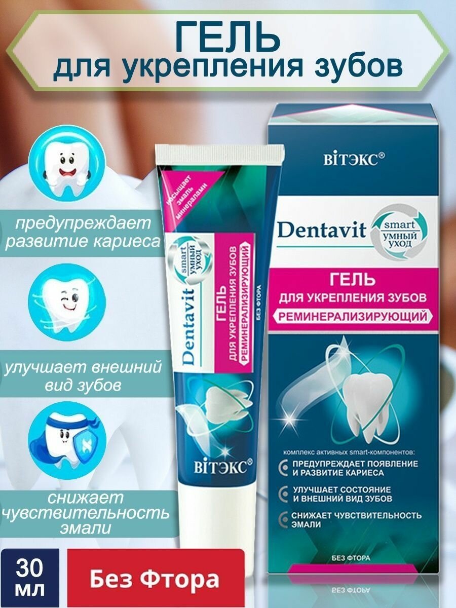 | Полное наименование | Гель для укрепления зубов Dentavit Smart "Реминерализирующий", без фтора, 30 г |