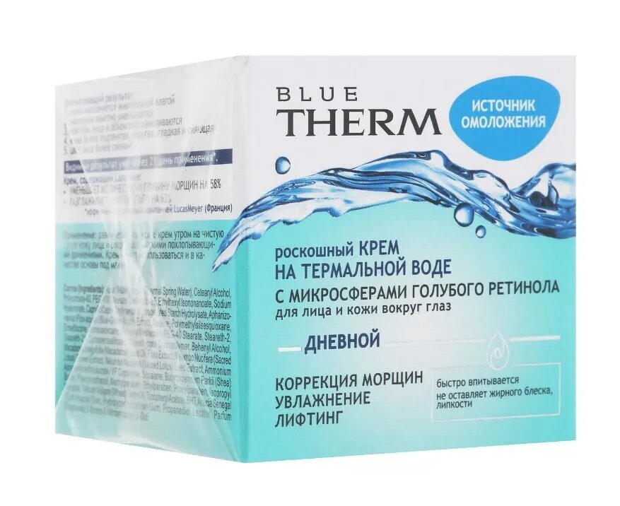 Восхитительно роскошный дневной крем на термальной воде с микросферами голубого ретинола для лица и кожи вокруг глаз, с бархатистой текстурой для интенсивного питания, увлажнения и разглаживания кожи, с эффектом мгновенного лифтинга. Комплекс активных компонентов моментально и надолго насыщает, даже самую обезвоженную кожу, увлажняющими и питательными компонентами. Подходит для всех типов кожи.
