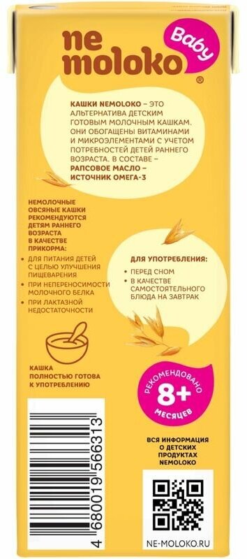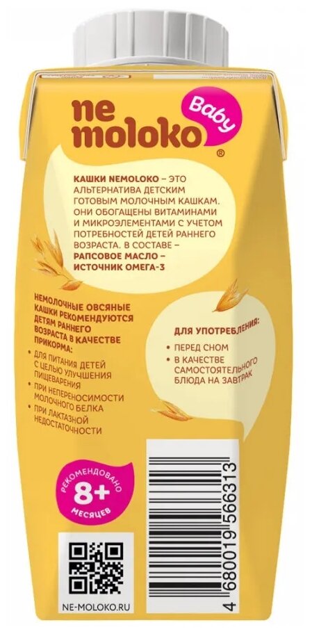 Каша Nemoloko овсяная безмолочная груша 200мл