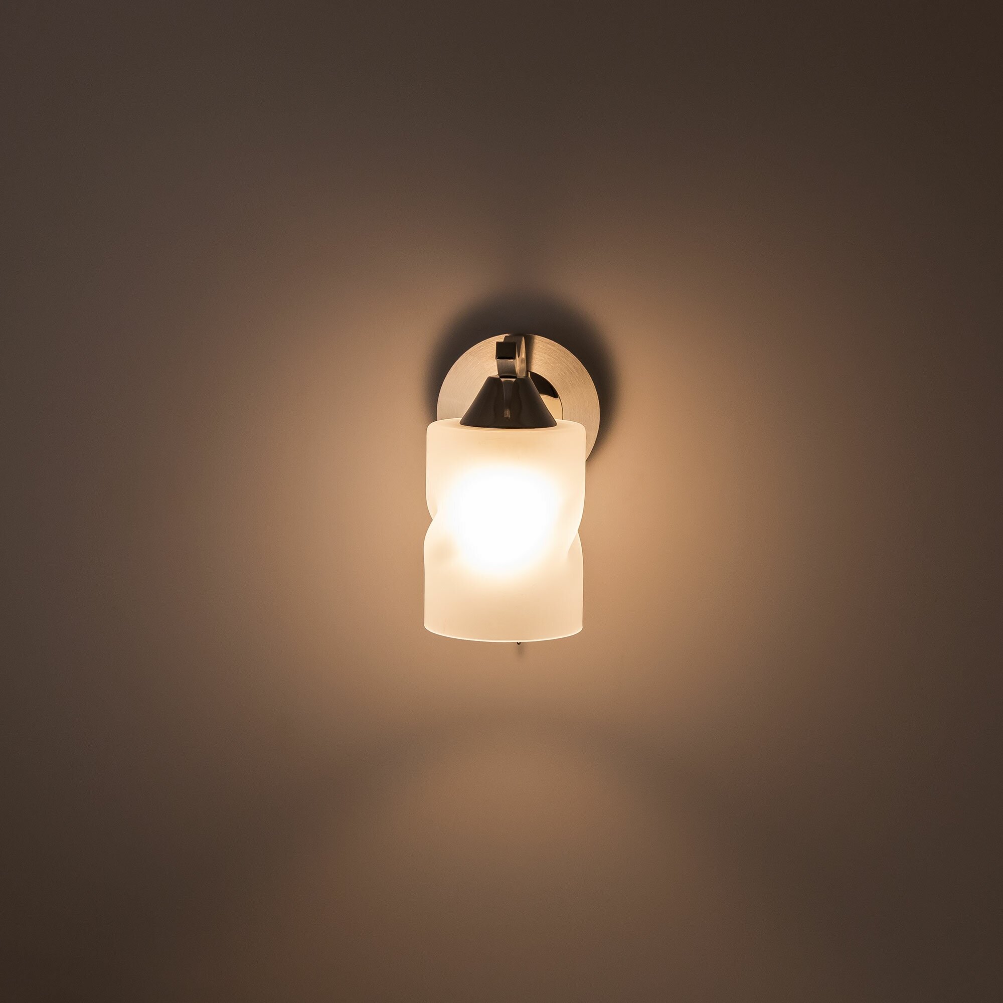 В дизайне бра Сиерра нашел отражение стиль модерн, с его плавными линиями и характерными цветовыми сочетаниями. В зависимости от того, для каких целей планируется использовать светильник, предусмотрены два варианта установки. Для чтения или работы с ноутбуком в кровати – предпочтительнее световой поток, направленный вниз, для отдыха или просмотра телевизора – вверх. И в том, и в другом случае рассеиватель из матового стекла обеспечивает мягкое комфортное освещение. Плафон выглядит необычно за счет декоративного приема с эффектом скручивания.