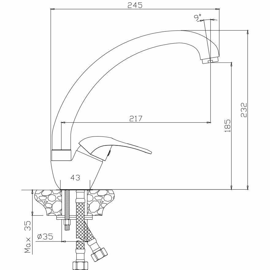 | Подводка в комплекте | гибкая |