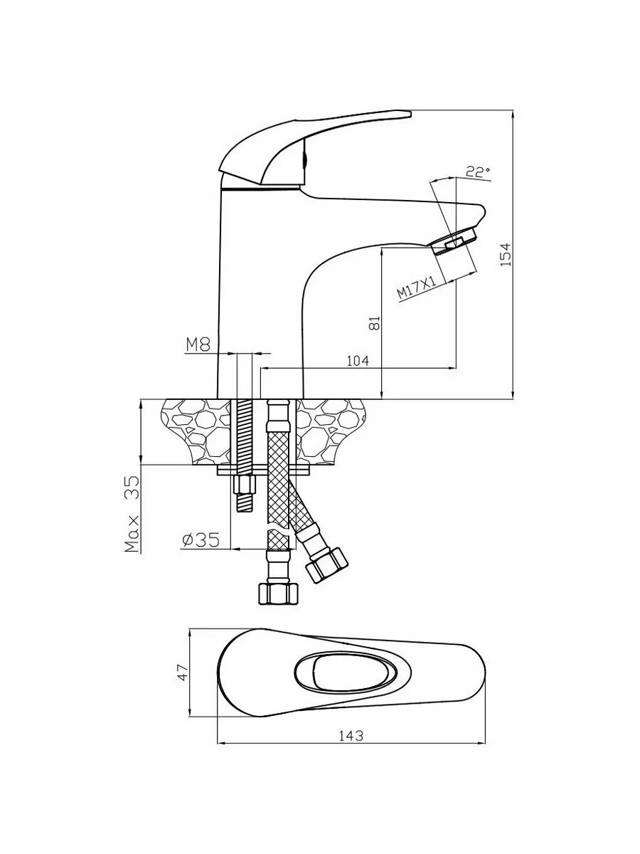 | Диаметр отверстия в раковине | 35 |