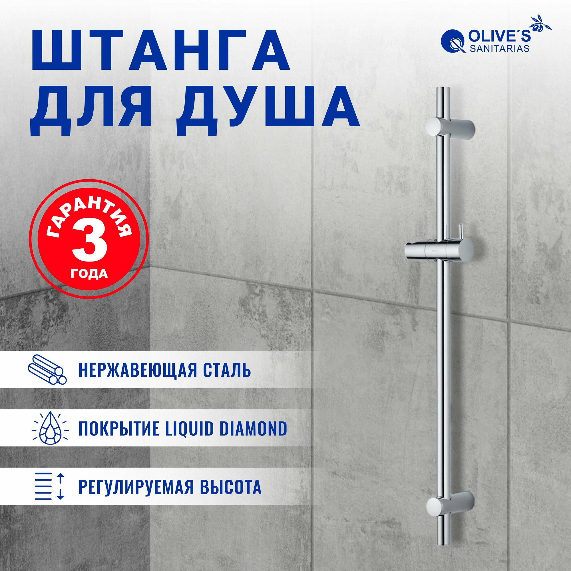 Штанга для душа Olives KD05. Хромированное покрытие Liquid Diamond обеспечивает зеркальный блеск, стойкость к появлению царапин и помутнений.