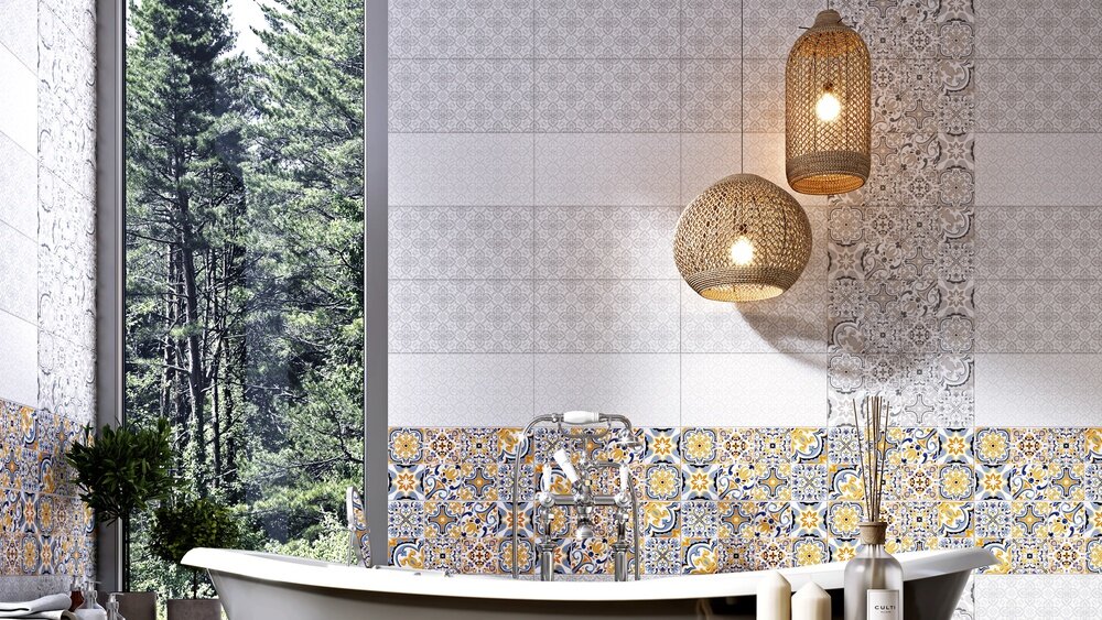 Узор на плитке напоминает шитье. Раньше этот стиль использовался, как правило, в эксклюзивных ретро- интерьерах, а сейчас популярен повсеместно. Он универсален, так как гармонично впишется почти в любой интерьер – будь то кантри, классика, прованс или эклектика.