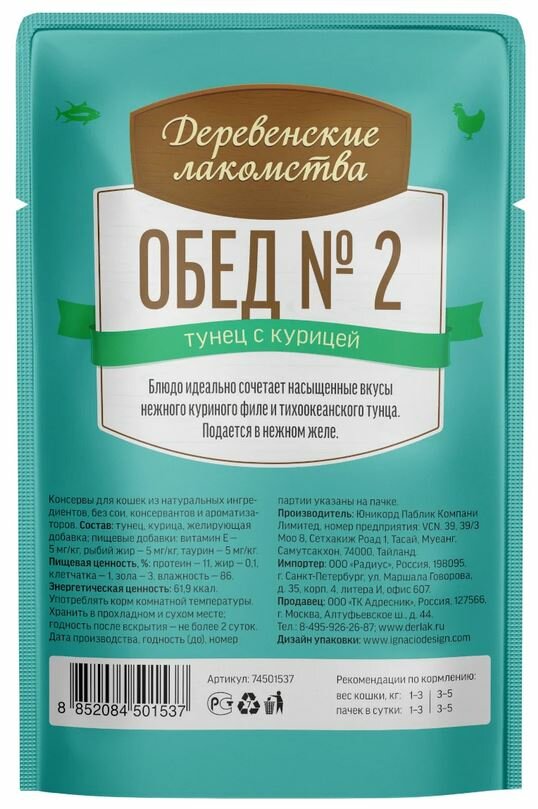 Влажный корм для кошек ДЕРЕВЕНСКИЕ ЛАКОМСТВА »