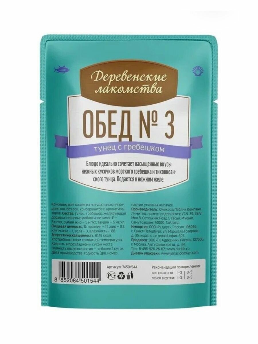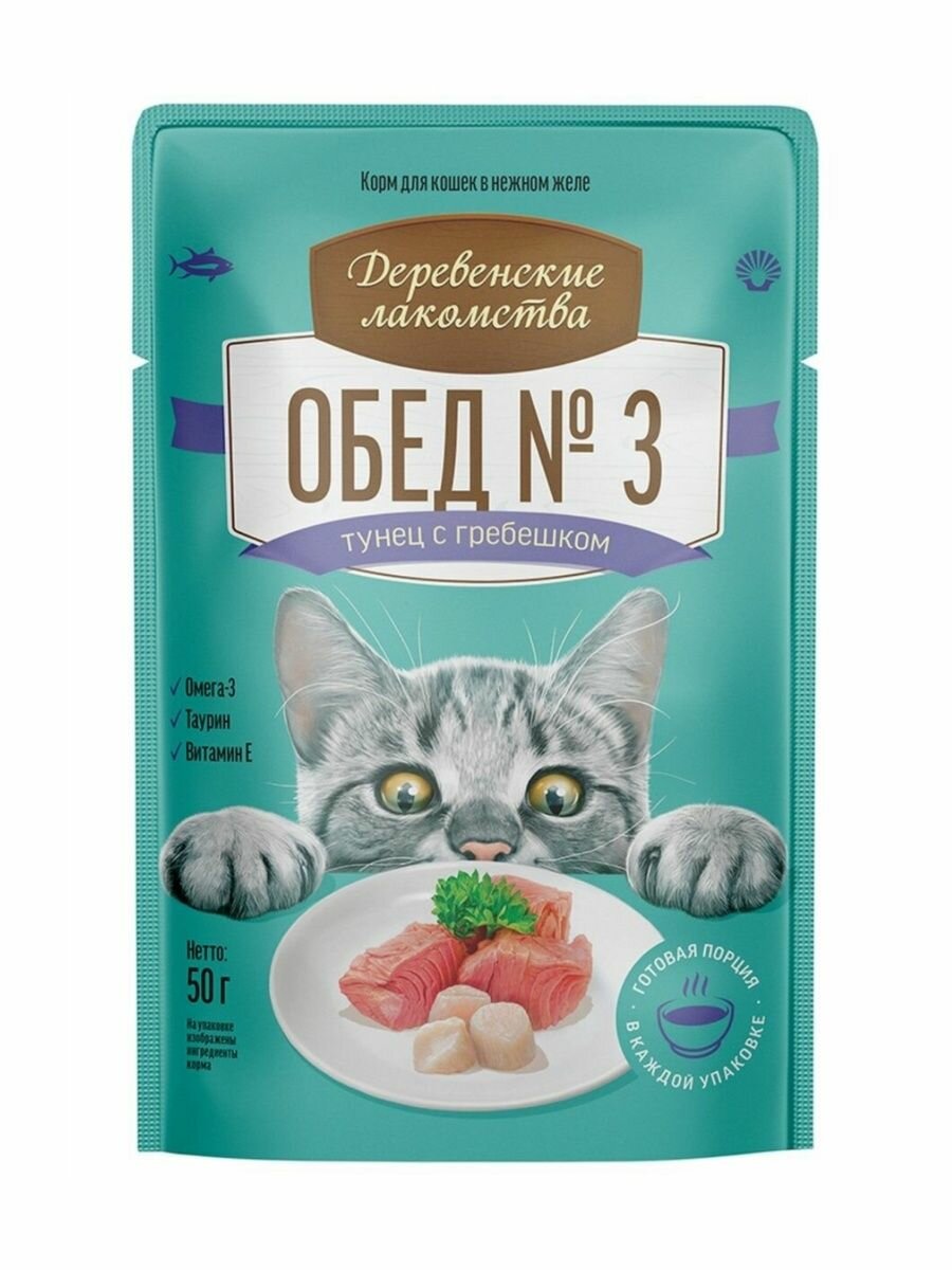 Корм для кошек Деревенские Лакомства тунец и гребешок 50 гр Обед №3