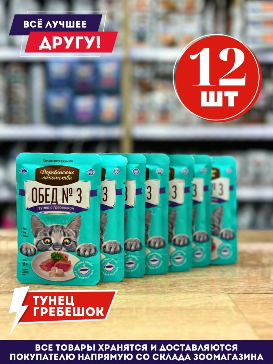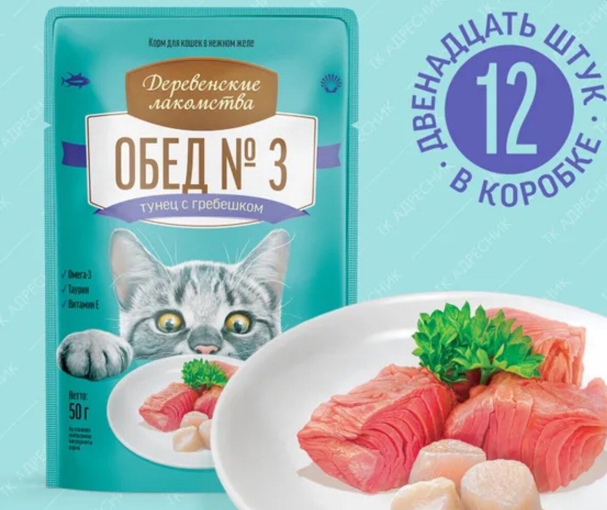 Сервис сравнения цен СкидкаГИД предлагает сравнить цены на товар «Корм для кошек Деревенские Лакомства тунец и гребешок 50 гр Обед №3»
