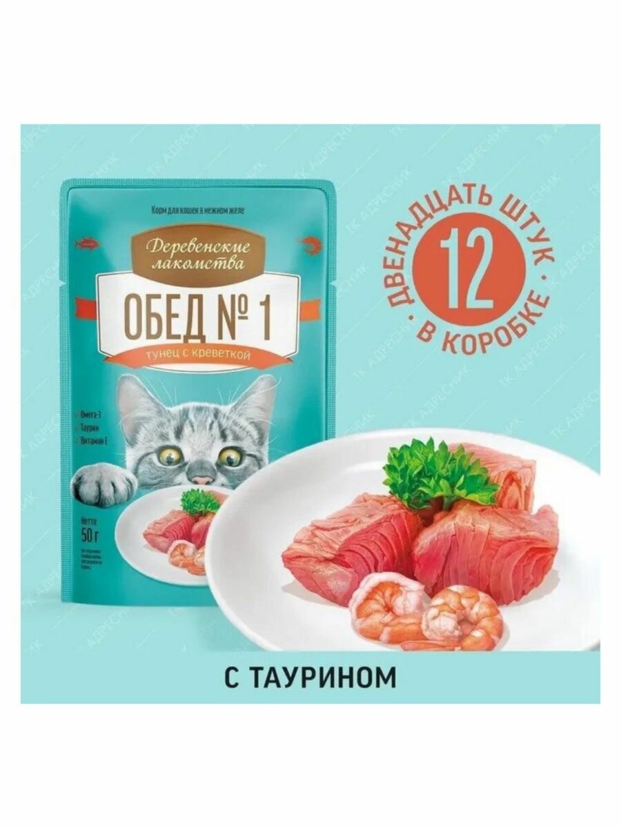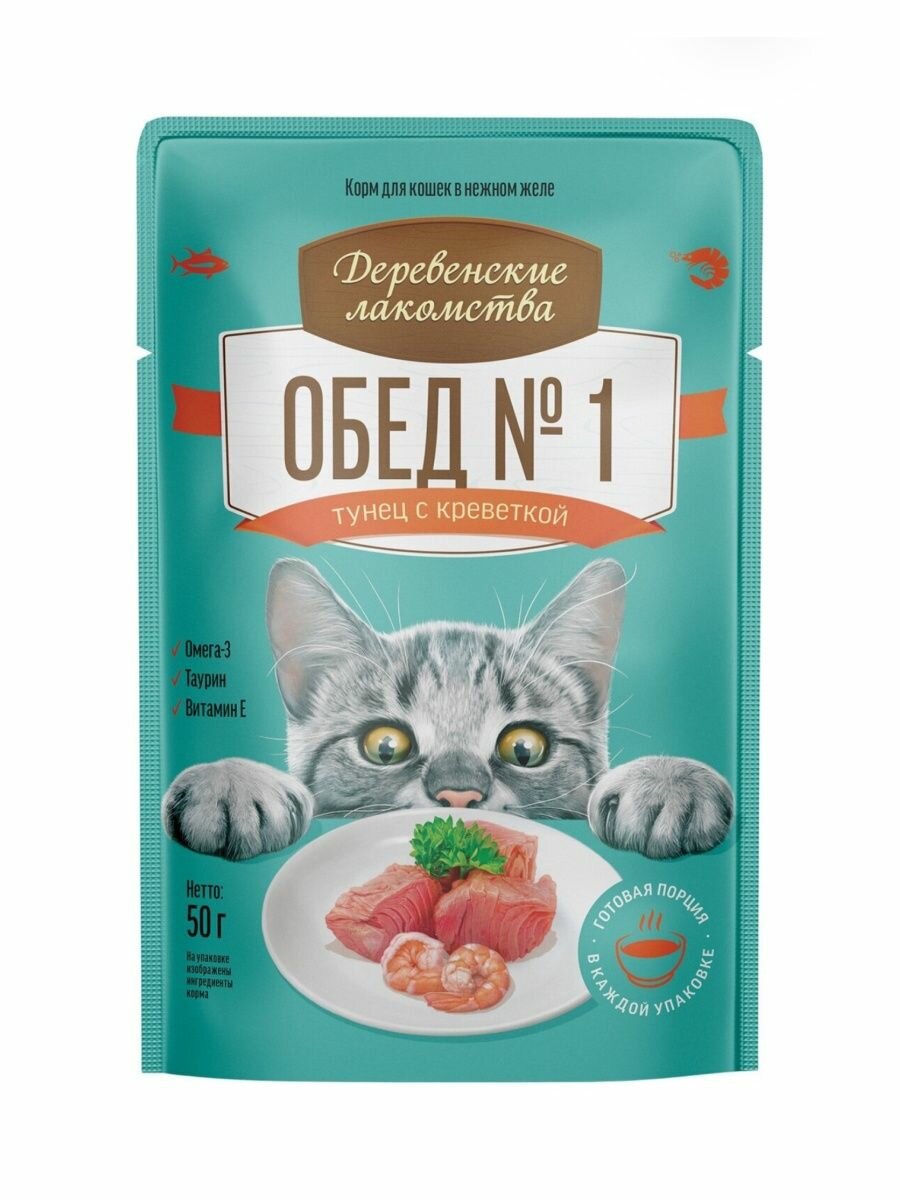 Корм для кошек Деревенские Лакомства тунец и креветка 50 гр