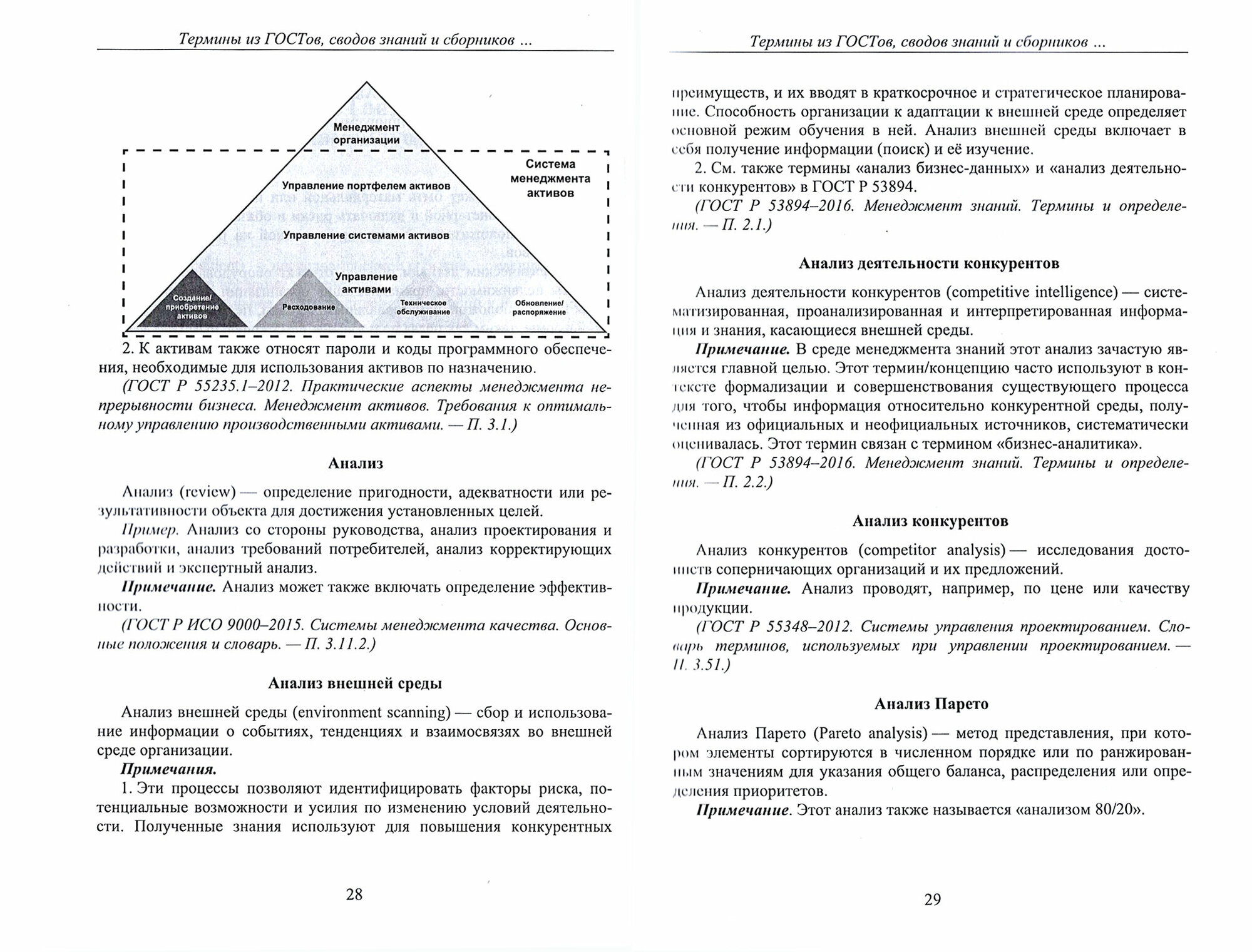 С одной стороны, в вузовских учебниках по направ-лениям подготовки "Менеджмент" и "Государст-венное и муниципальное управление", а также в книгах, рекомендованных слушателям MBA, вво-дится и используется много управленческих терми-нов. С другой стороны, имеется нормативная база (ГОСТы, своды знаний и сборники рекомендуемых терминов), которой авторы книг обычно не пользу-ются. А менеджеры тоже слабо знакомы с ГОСТами и сборниками рекомендуемых терминов. В настоя-щем справочнике собраны 484 определения терми-нов, взятых из этой нормативной базы. Горизонт ретроспективного исследования российских стан-дартов - 10 лет, количество исследованных ГОСТов - около 20500. В приложениях приведены определе-ния 113 терминов теории решения изобретательских задач и теории ограничений, по которым пока не действует ни один ГОСТ, указаны приня-тые/действующие ГОСТы по управлению проекта-ми, по системной и программной инженерии, по методологиям "Бережливое производство" и "Шесть сигм".