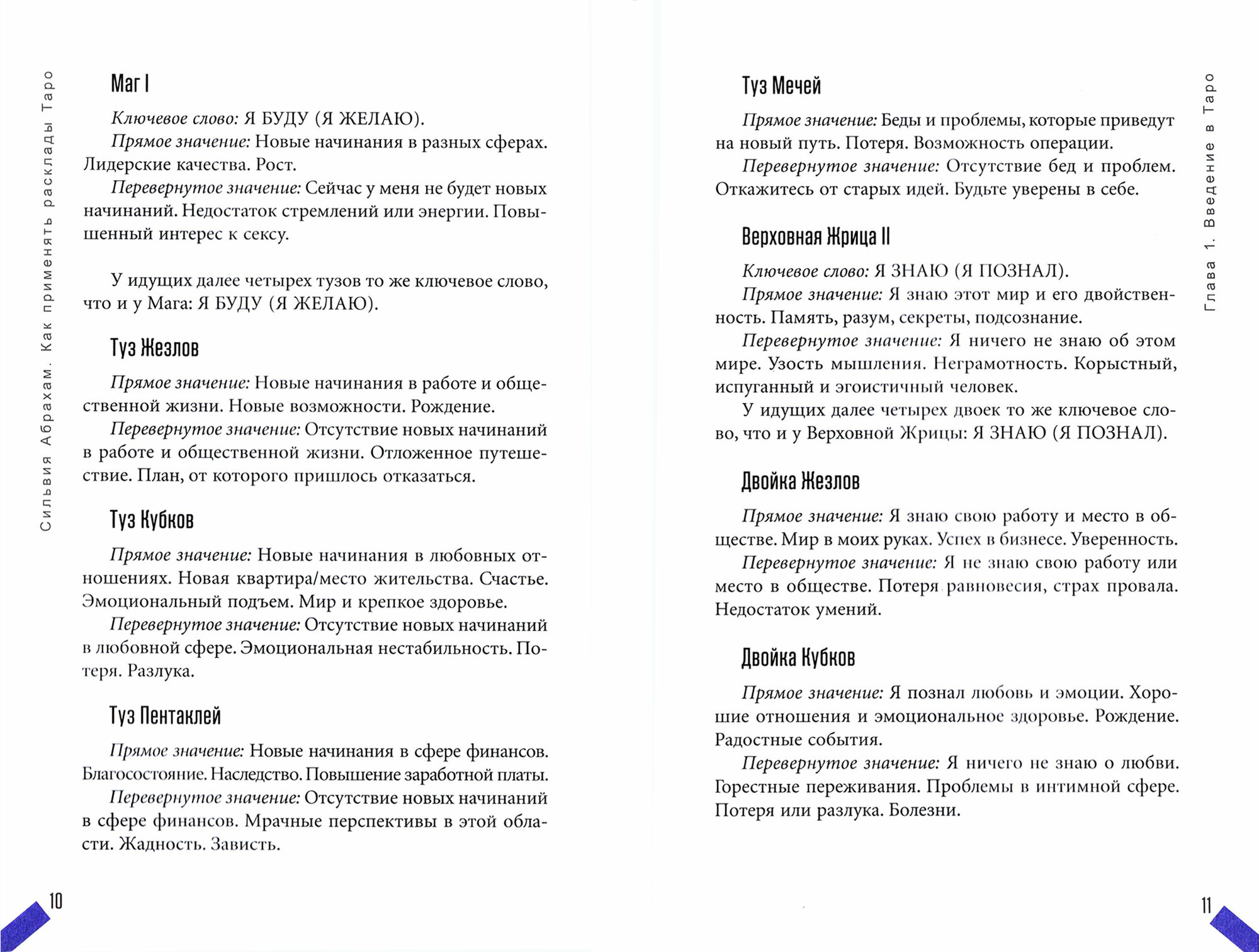 В руководстве приводятся значения карт, эффективные расклады и примеры толкований на самые разные темы: