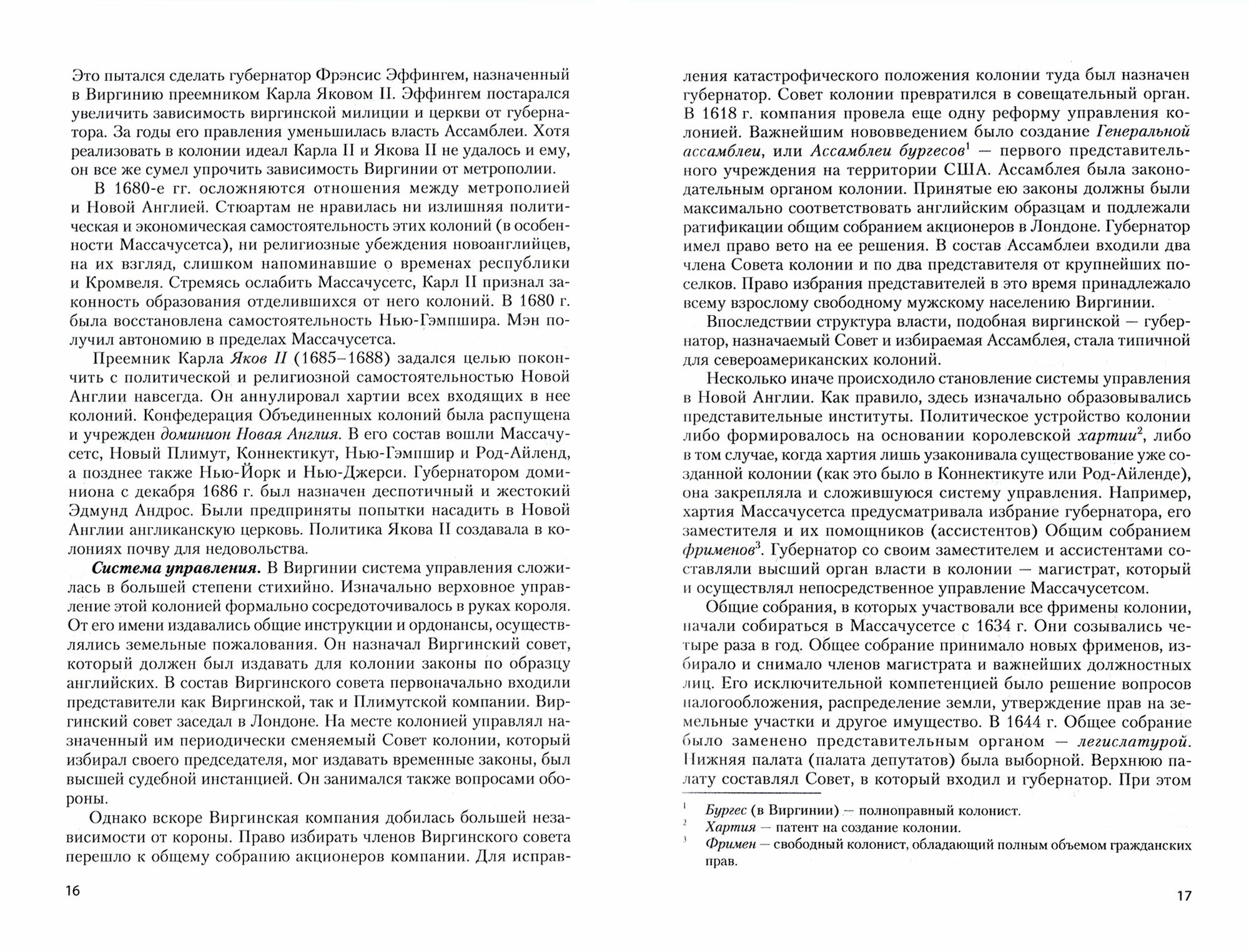 В учебном пособии рассматриваются процессы возникновения и развития английских колоний в Северной Америке XVII-XVIII вв., а также процесс образования и становления молодого американского государства. Значительное внимание уделяется социально-экономическим процессам, изучение которых дает возможность более полно рассмотреть политические и правовые тенденции и особенности. Подробно характеризуется политическое устройство колоний, анализируются колониальные хартии. Освещается первая североамериканская революция, дается анализ политических программ и деятельности первых американских политических группировок и их лидеров. Подробно рассматривается процесс выработки и ратификации Конституции 1787г., анализируются ее содержание и политическая деятельность первых американских президентов. Отдельная глава посвящена развитию права в XVII-XVIII вв.