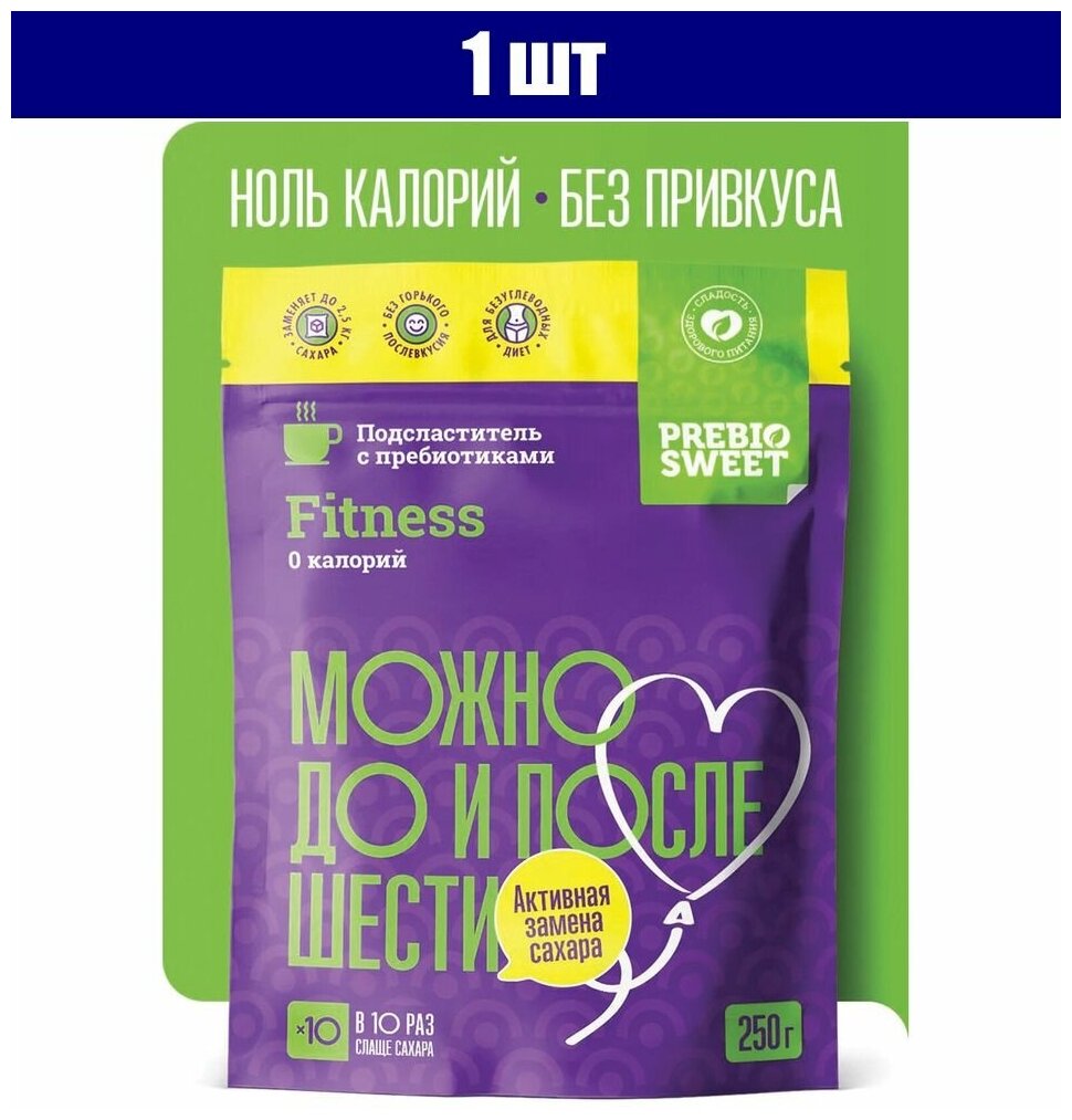 Функциональный заменитель сахара Пребиосвит Фитнес не только безопасен, но и полезен для здоровья. Ноль калорий ! Незаменим при безуглеводной диете и косметическом голодании - способствует похудению и поддержанию здоровой формы. Показан для диабетиков. Обладает чистым сладким вкусом и способен заменить сахар в напитках, выпечке, десерте. Термостабилен.