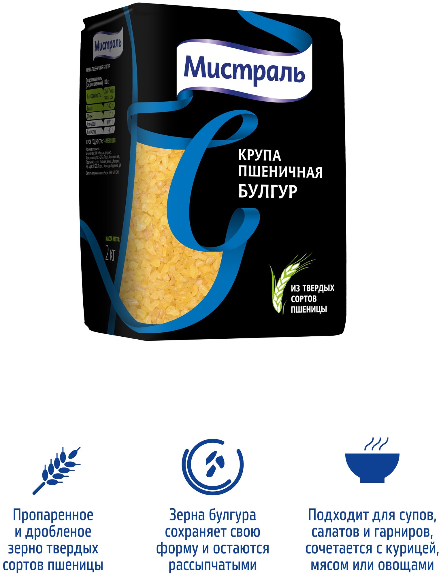 На сегодняшний день товар «Крупа Мистраль пшеничная Булгур 2кг» можно купить с кешбеком в 2 магазинах: Vprok (Перекресток), Яндекс.Маркет
