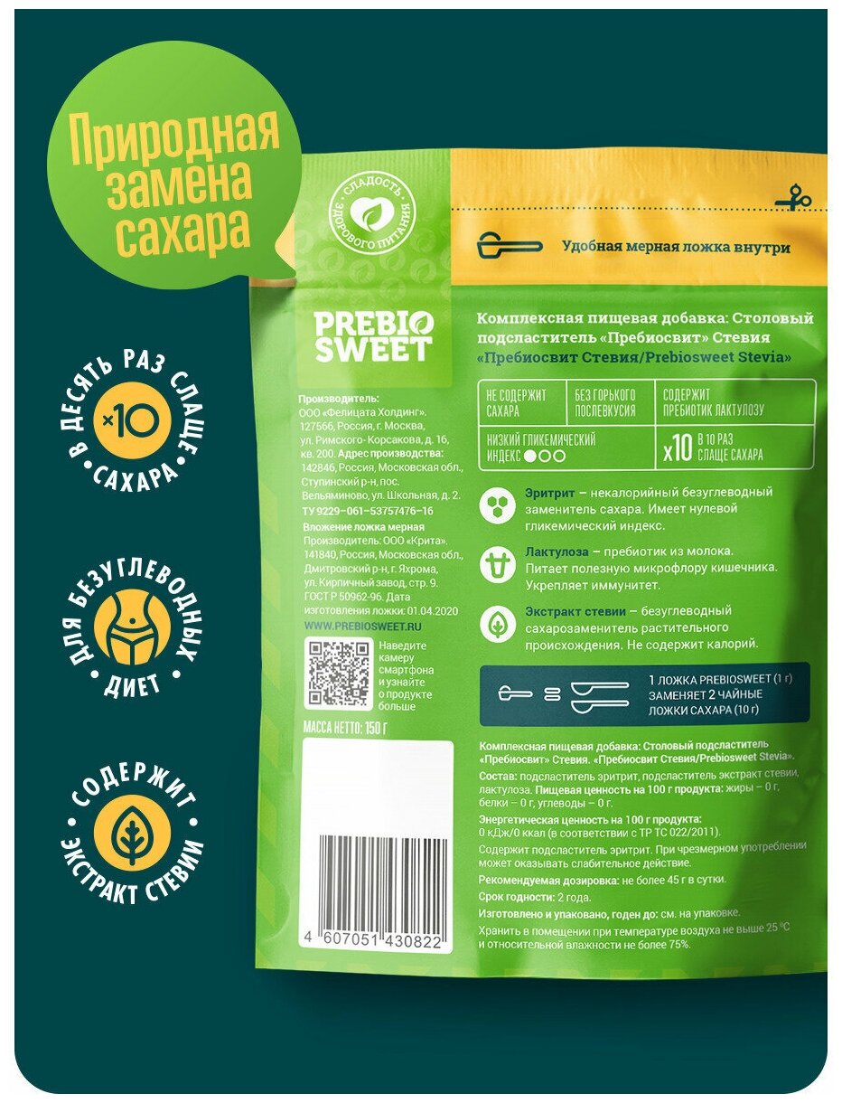 Сервис сравнения цен СкидкаГИД предлагает сравнить цены на товар «Подсластитель PrebioЫweet Stevia Столовый 150г PrebioSweet»