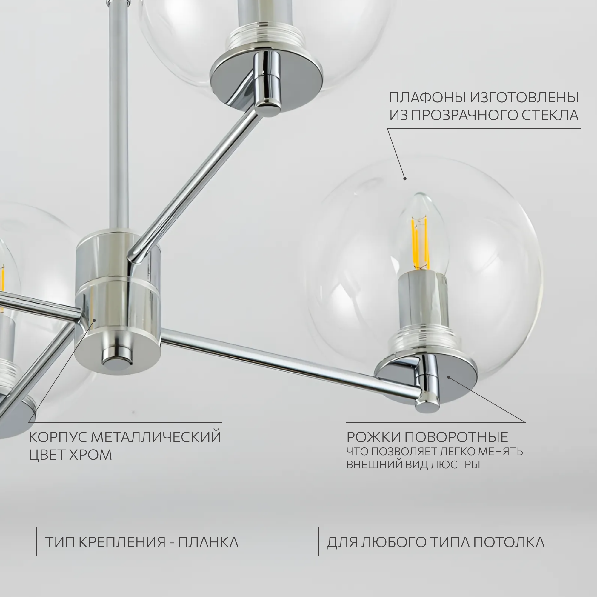 | Цвет плафонов и подвесок | Прозрачный |