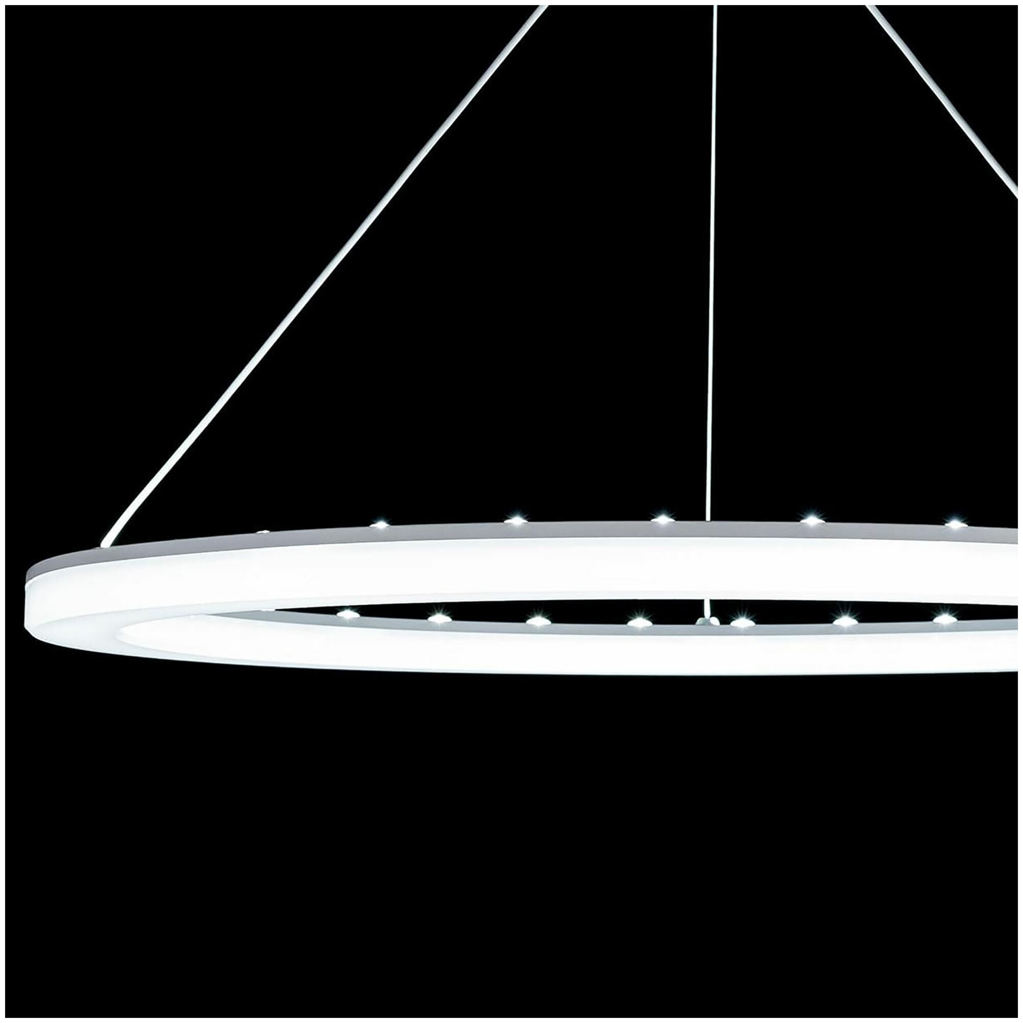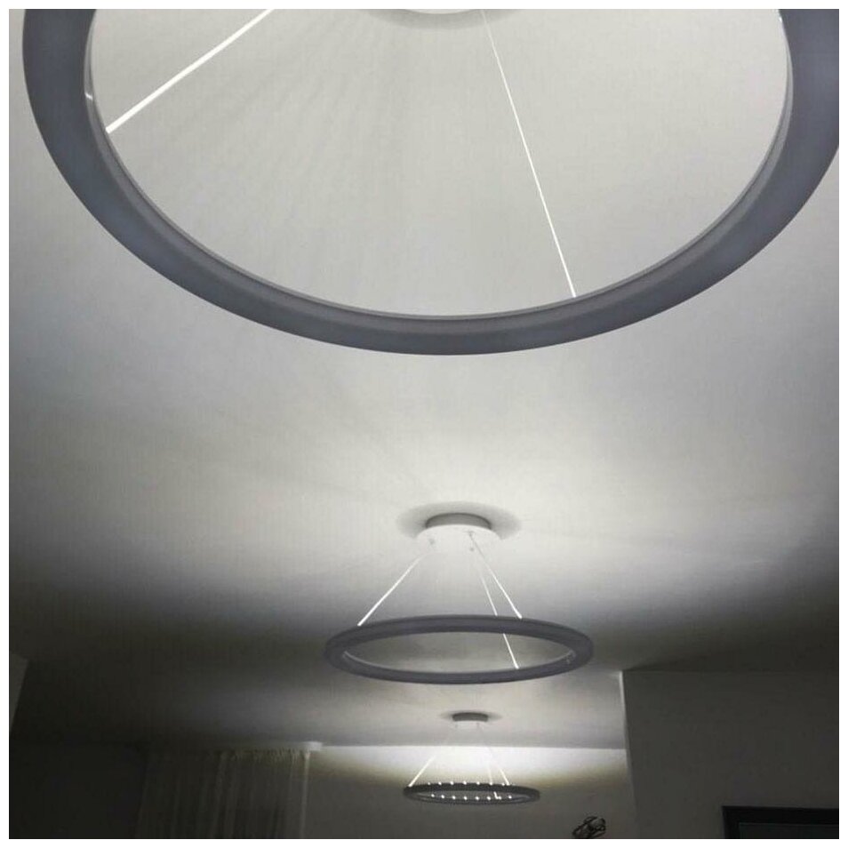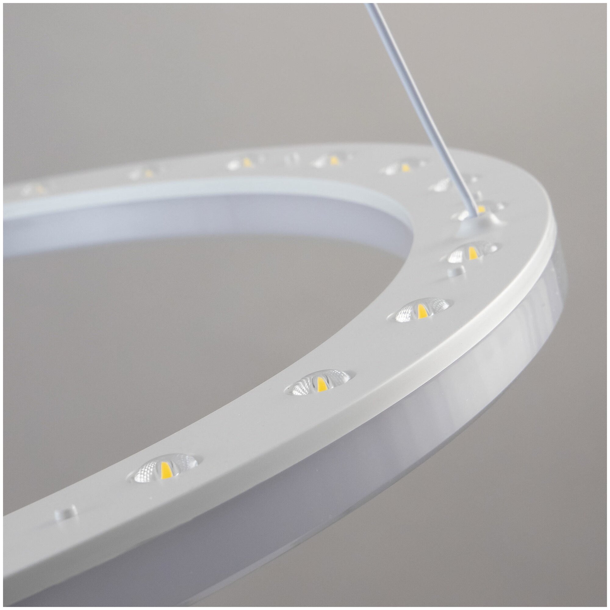 Подвесной светильник Электрон сочетает в себе оригинальный дизайн и высокую функциональность. Модель состоит из круглого основания и рассеивателя-кольца, которые соединены между собой тремя тонкими тросами. Рассеиватель выполнен из оптического полимера в универсальном белом цвете, оснащен встроенными светодиодами. Свет мягкий и комфортный для глаз, как при дневном освещении. Для удобства пользователя предусмотрено несколько режимов работы: доступна регулировка яркости и цветовой температуры, есть функция памяти. Управлять прибором можно пультом дистанционного управления (входит в комплект).
