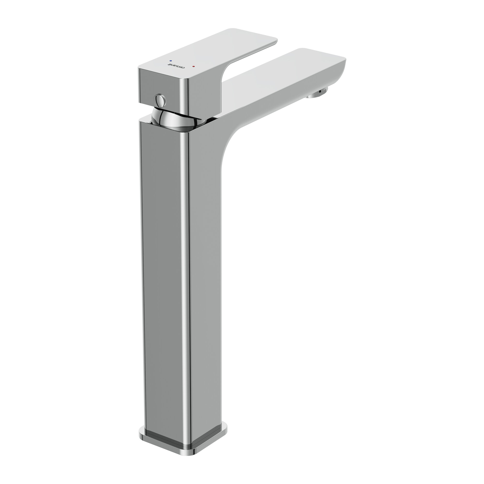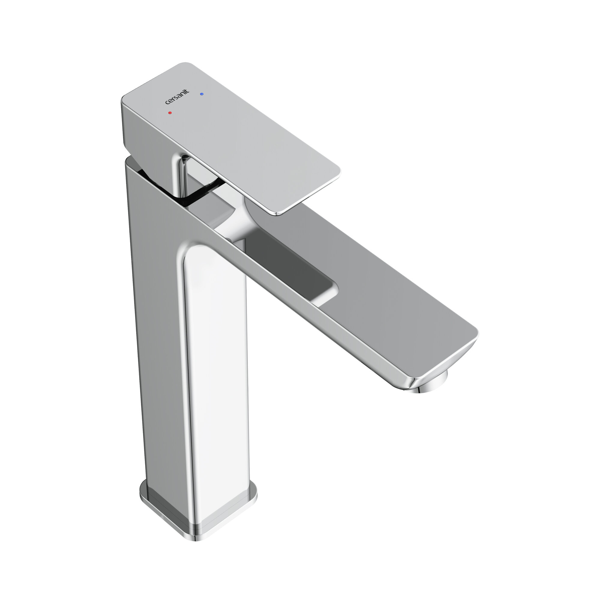 Высокий однорычажный смеситель для раковины Cersanit Geo 63043 с донным клапаном, фиксированным изливом и аэратором.