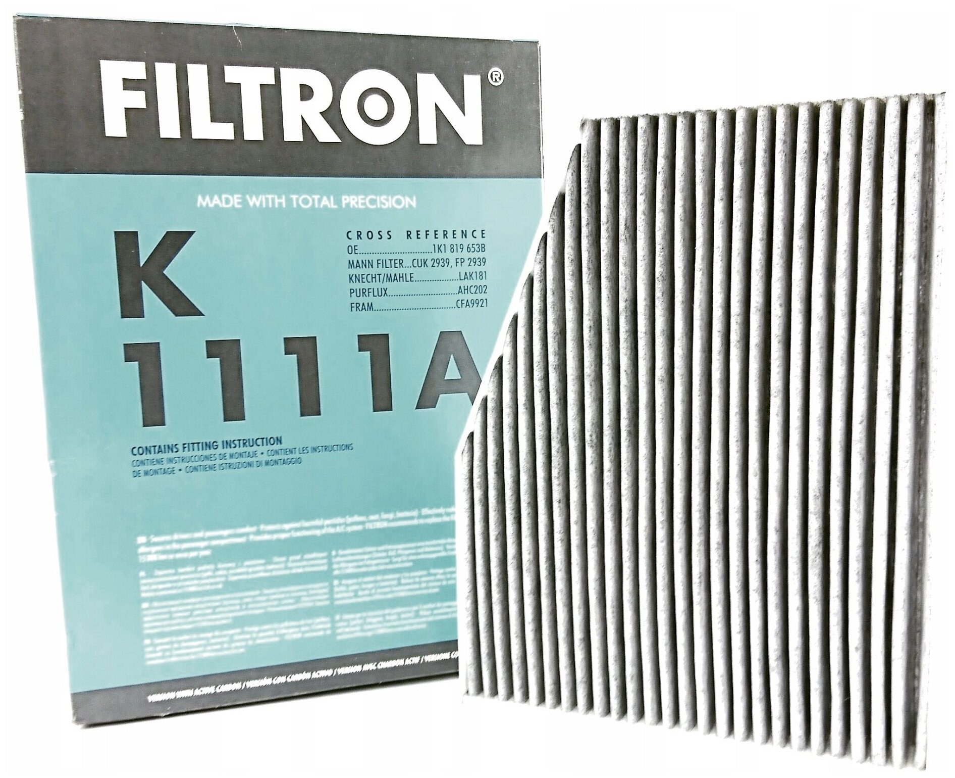 Фильтр салона FILTRON K 1111A для Audi A3, Seat Altea, Skoda Octavia, VW Caddy/Golf 1.9TDi/2.0TDi 03> изготавливается с помощью высококачественных фильтрующих материалов, которые обладают электростатическими свойствами и, таким образом, способны удерживать даже микроскопические частицы вредных примесей (в несколько десятков раз меньше диаметра человеческого волоса).Дополнительная защита благодаря технологии PROTECT+Технология PROTECT+ уменьшает риск аллергических реакций и защищает пассажиров от аллергенов, бактерий и плесени, которые могут появиться на фильтре. Технология PROTECT+ основана на видимом под микроскопом покрытии из специальных микрочастиц. Эта технология используется в качестве стандартной в каждом фильтре салона FILTRON.Соответственно подобранное количество активированного угляСалонные фильтры с активированным углем, помимо твердых частиц, задерживают вредные газы и запахи. Количество активированного угля в фильтре подбирается таким образом, чтобы фильтр мог долго и эффективно очищать воздух от вредных летучих органических соединений.
