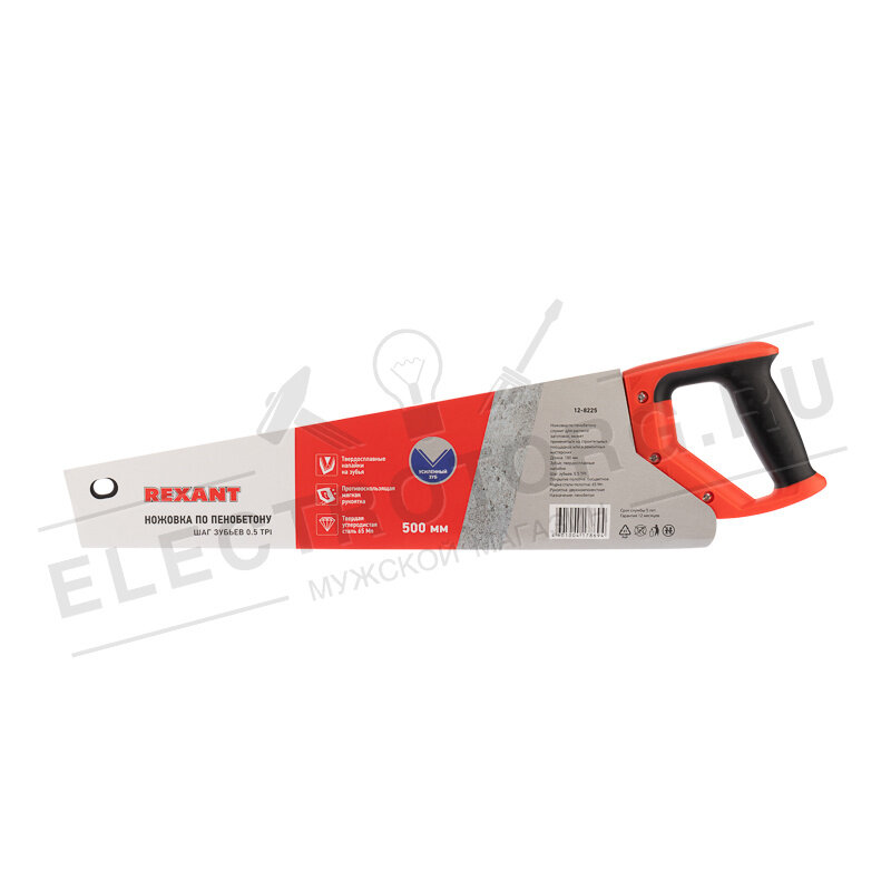 | Доп. наименование Водопад | Ножовка по пенобетону Rexant 12-8225 500 мм, защитное покрытие, твердосплавные напайки на зубья Rexant |