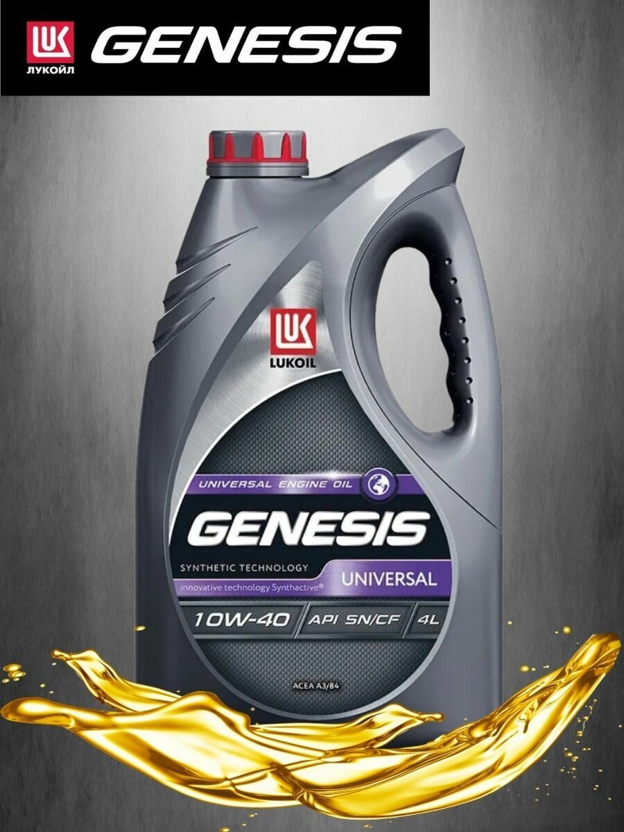 LUKOIL GENESIS UNIVERSAL 10W-40 - всесезонное моторное масло на основе синтетических технологий, разработанное для применения в бензиновых и дизельных двигателях пост гарантийных автомобилей зарубежного и отечественного производства.
