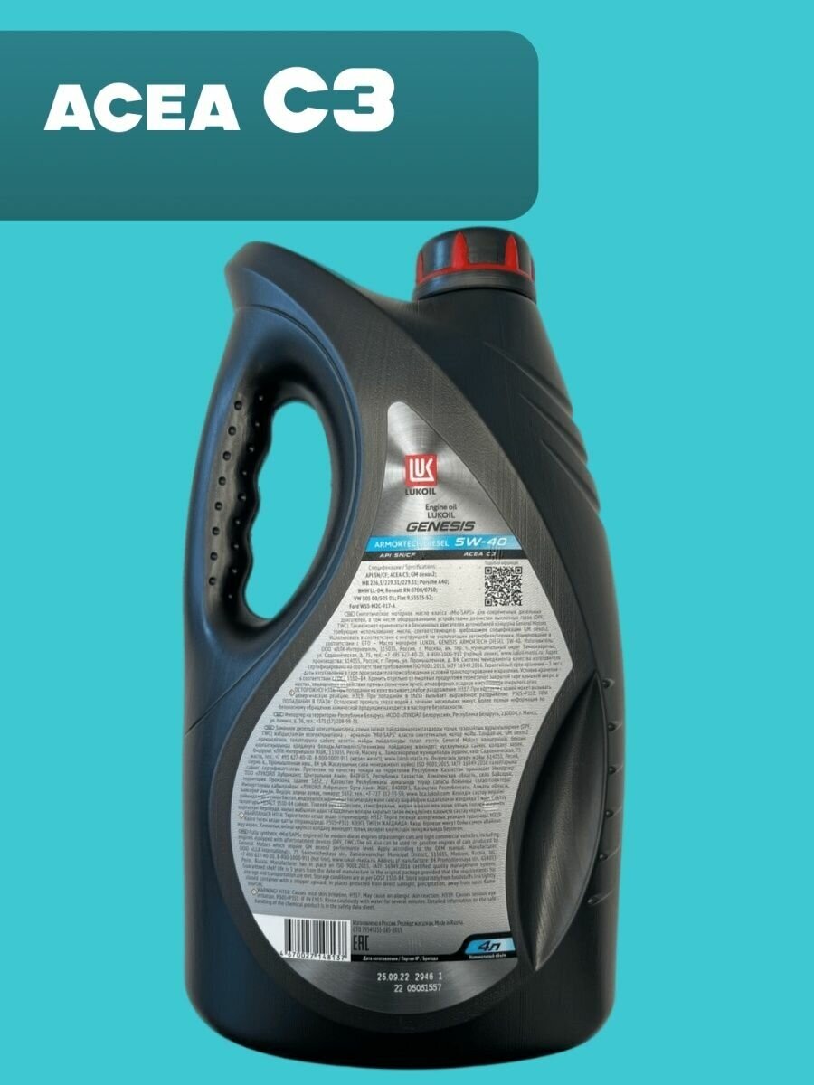ЛУКОЙЛ GENESIS ARMORTECH 5W-40 - всесезонное полностью синтетическое моторное масло последнего поколения для применения во всех современных высокофорсированных двигателях легковых, легких грузовых, спортивных автомобилей и микроавтобусов, в том числе оборудованных турбонаддувом. Подходит для автомобилей марок: AUDI, BMW, CHERY, CITROEN, GEELY, GREAT WALL, HYUNDAI, KIA, LEXUS, LIFAN, MERCEDES-BENZ, MINI, MITSUBISHI, NISSAN, PEUGEOT, PORSCHE, RENAULT, SEAT, SKODA, SSANGYONG, SUBARU, SUZUKI, TOYOTA, VOLKSWAGEN. ЛУКОЙЛ GENESIS ARMORTECH 5W-40 производится с использованием высококачественных синтетических компонентов с применением передовой технологии пакета присадок (DuraMax), специально разработанного для ЛУКОЙЛ и обеспечивающего высокие противоизносные, антиокислительные и антикоррозионные свойства масла. Одобрено: API SN - лицензировано MB-Approval 226.5, 229.5 VW 502.00/505.00Renault RN 0700/0710 Porsche A40 BMW LL-01 Соответствует требованиям: API CF ACEA A3/B4, A3/B3 FIAT 9.55535-N2, 9.55535-Z2 OPEL GM-LL-B-025 PSA B71 2296 ЛУКОЙЛ GENESIS ARMORTECH 5W-40 рекомендовано к всесезонному применению в бензиновых и дизельных двигателях (без фильтров сажевых частиц - DPF) автомобилей MERCEDES-BENZ-Benz, Renault, Volkswagen, Skoda, Audi, BMW, Porsche, KIA, Hyundai, Toyota, Nissan, Honda, Mitsubishi как в гарантийный, так и послегарантийный период эксплуатации. Также подходит для применения в двигателях, требующих масел класса API SN, ACEA A3/B3, A3/B4 и класса вязкости SAE 5W-40. - Отличные антиокислительные и антикоррозионные свойства. - Улучшенные моюще-диспергирующие свойства. - Подходит для эксплуатации двигателя при повышенных нагрузках - режим старт-стоп. - Специально подобранная рецептура минимизирует расход масла на угар. - Превосходные низкотемпературные свойства способствуют легкому пуску двигателя при низких температурах. - Максимальная защита двигателя от износа в жестких условиях городского цикла и в условиях повышенных нагрузок. - Предотвращает образование высоко- и низкотемпературных отложений в двигателе. - Высокое содержание нейтрализующих присадок позволяет использовать топливо с повышенным содержанием серы. Товар сертифицирован. Уважаемые клиенты! Обращаем ваше внимание на то, что упаковка может иметь несколько видов дизайна. Поставка осуществляется в зависимости от наличия на складе.