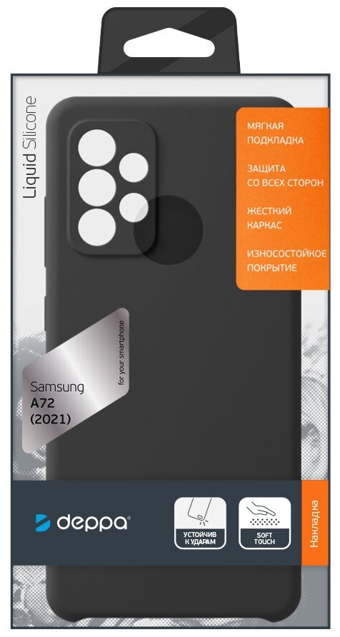 Чехол (клип-кейс) DEPPA Liquid Silicone для Samsung Galaxy A72 черный [870117]