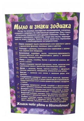 | Состав набора | ароматизатор; краситель; мыльная основа; формочка |